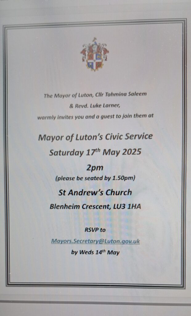 As a follow up, the Mayor invited the Executive to her Civic Ceremony on 17th May 2025 to celebrate her year in office. This took place at St Andrew's Church and was a lovely afternoon where Tahmina gave an excellent if emotional speech. Congratulations to her and we look forward to seeing her again at u3a soon.