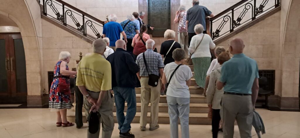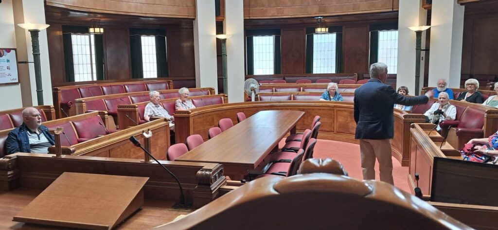 Tour of Town Hall: On 28th June, 21 members had an opportunity to tour ourTown Hall. Everyone really enjoyed themselves. Hardly anything has changed since it was rebuilt and completed and opened to the public in 1936. All very Neo-classical and Art Deco style. The Chair will organise more visits in the future if possible. Thanks again to David J for sharing his heritage knowledge and for making an interesting morning.